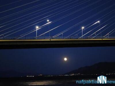 Είναι από τις στιγμές που θέλει να ζει πάντα ο φωτογράφος. Mια πανέμορφη πανσέληνος σε ένα πανέμορφο τοπίο με το κάστρο του Αντιρρίου, αλλά και την πανέμορφη φωτισμένη γέφυρα. Ο φακός του nafpaktianews.gr βρέθηκε εκεί.