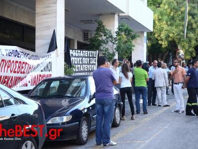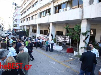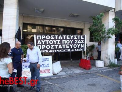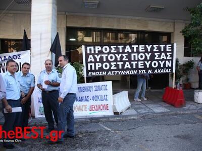 Συγκέντρωση έξω από το Αστυνομικό Μέγαρο της οδού Ερμού στην Πάτρα πραγματοποίησαν από νωρίς το πρωί αστυνομικοί, οι οποίοι κρέμασαν πανό που γράφει "Προστατεύστε αυτούς που σας προστατεύουν" και μαύρες σημαίες.