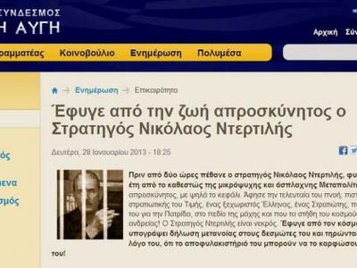 Το επίσημο site της Χρυσής Αυγής αποχαιρετά εγκάρδια τον χουντικό έκπτωτο στρατηγό Νίκο Ντερτιλή, χαρακτηρίζοντάς τον ως «απροσκύνητο» και «ξεχωριστό Έλληνα». Δείτε την ανάρτηση: