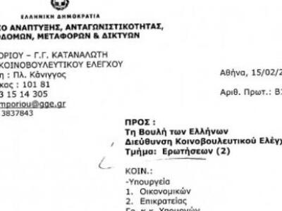 Το έγγραφο του υπουργείου Ανάπτυξης διαβιβάστηκε στη Βουλή μετά από ερώτηση του βουλευτή της ΝΔ Λευτέρη Αυγενάκη σχετικής με την αντιμετώπιση της καταχρηστικής αύξησης του περιθωρίου κέρδους spread από τα πιστωτικά ιδρύματα και τον κυβερνητικό σχεδιασμό για τα στεγαστικά, επιχειρηματικά και καταναλωτικά δάνεια.