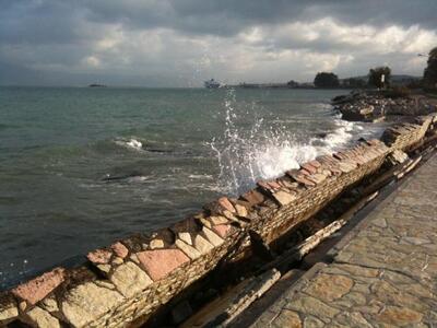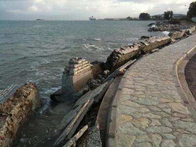 Το κύμα σκάει στο δρόμο όπου μαζί με τα νερά βγαίνουν και πέτρες. Όπως αναφέρει ο αρμόδιος αντιδήμαρχος για την Πολιτική Προστασία Αχιλλέας Γεωργακόπουλος σήμερα στη 1 το μεσημέρι στο γραφείο του έχει προγραμματιστεί συνάντηση με εκπροσώπους των εμπλεκομένων φορέων (Περιφέρεια, Κτηματικη) προκειμένου να αναζητηθούν λύσεις μιας και ο αιγιαλός ανήκει στη ζώνη ευθύνης της Κτηματικής.