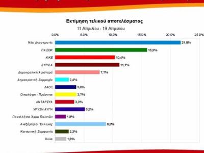 Εξαιρετικό ενδιαφέρον παρουσιάζει η εκτίμηση ψήφου των αναποφάσιστων όπου ΠΑΣΟΚ και ΝΔ καταφέρνουν να πείσουν μόνο το 20% από αυτούς ενώ είναι φανερή η πρόθεσή τους για επιλογή μικρότερων κομμάτων.