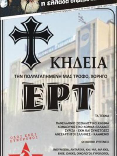 Δεν κρύβουν τη χαρά τους οι ακραίοι κύκλοι της χώρας για το λουκέτο στην ΕΡΤ. Το εξώφυλλο της ακροδεξιάς εφημερίδας Στόχος τα λέει όλα αφού η άποψη είναι τόσο απαράδεκτη όσο και κακόγουστη.
