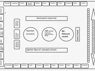 Περιφερειακά  υπάρχουν 33 περίπτερα διαστάσεων  4μέτρα πρόσοψη  &  2 μέτρα βάθος.