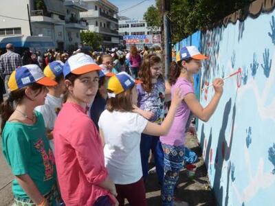 Το πρωί της ίδιας ημέρας, οι μαθητές των σχολείων, οι οποίοι καθ’ όλη τη διάρκεια της σχολικής χρονιάς είχαν ενημερωθεί για την ασφαλή πλοήγηση τους στο Διαδίκτυο από την ομάδα, σε συνεργασία με τους υπευθύνους εικαστικών των σχολείων τους αλλά και καλλιτέχνες γκράφιτι από Αθήνα και Πάτρα, δημιούργησαν πολύ όμορφες τοιχογραφίες στο μαντρότοιχο του Γενικού Νοσοκομείου Πάτρας, περνώντας μηνύματα για το ασφαλές «σερφάρισμα» στο διαδίκτυο μέσα από αυτή την εικαστική προσέγγιση!