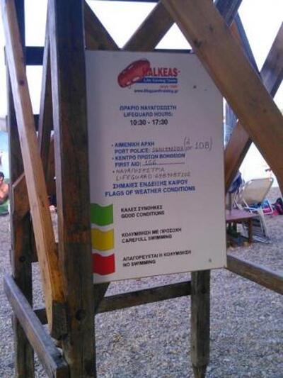Το ότι βρίσκεται σε ναυαγοσωστικό βάθρο παρέχοντας πληροφορίες προς τους λουόμενους δεν απαλλάσσει τους υπεύθυνους τη στιγμή που ο χώρος γύρω και κάτω από το βάθρο γεμίζει μικρά, κυρίως, παιδιά, τις περισσότερες ώρες της ημέρας.