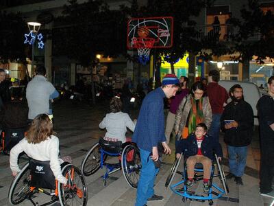 Σε γήπεδο μπάσκετ μετέτρεψαν την πλατεία Γεωργίου της Πάτρας Ανάπηροι συμπολίτες μας που μετακινούνται στην πόλη με τα αμαξίδιά τους. Έβαλαν καλάθια και κάλεσαν τους Πατρινούς να πουν μαζί «όχι» στον κοινωνικό αποκλεισμό κατά των Ατόμων με Αναπηρία.