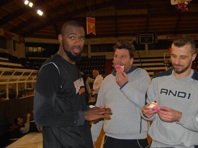 Γλυκά κέρασαν για την ονομαστική τους γιορτή μετά το τέλος της προχθεσινής προπόνησης οι Γιάννης Μολφέτας, Γιάννης Γεωργαλής και ο φυσιοθεραπευτής της ομάδας, Γιάννης Αναστασόπουλος.