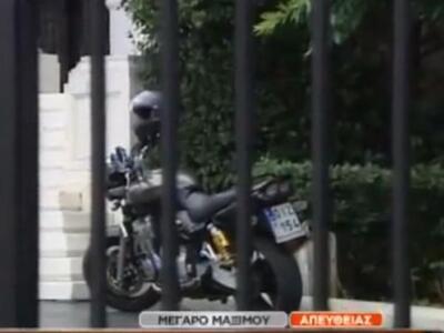 Χθες πήγε στο υπουργείο Οικονομικών με τα πόδια, και χωρίς φρουρά, σήμερα στο Μαξίμου με τη μηχανή. Αρχικά οι ρεπόρτερ, οι οποίοι ήταν συγκεντρωμένοι έξω από το Μαξίμου, όταν είδαν τη μηχανή, νόμιζαν ότι πρόκειται για κάποιον από τους άντρες της προσωπικής ασφάλειας του πρωθυπουργού Α.Τσίπρα.