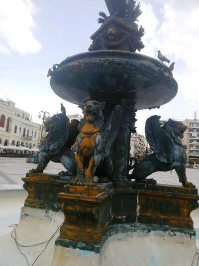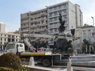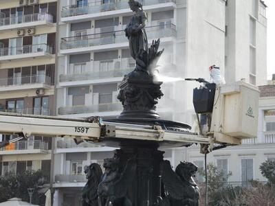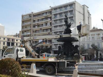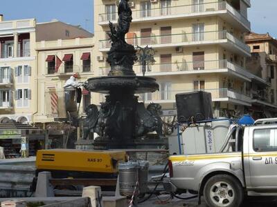 Το νερό αφαιρέθηκε για να γίνουν εργασίες καθαρισμού των ιστορικών συντριβανιών. Τα αγάλματα καθαρίστηκαν και γυάλισαν κυριολεκτικά μετά τις ειδικές εργασίες που έκαναν τα δημοτικά συνεργεία.