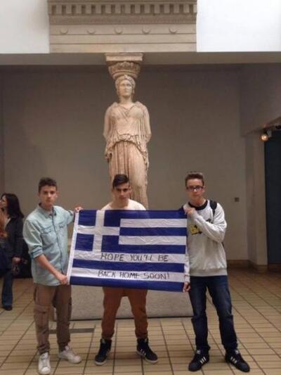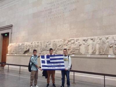 Αυτοί είναι οι πατρινοί μαθητές που βρέθηκαν στην Αγγλία και επισκέφθηκαν το Βρετανικό Μουσείο, όπου βρίσκονται και τα Ελγίνεια μάρμαρα, της Ακρόπολης. Και εκμεταλλεύτηκαν δεόντως την ευκαιρία στέλνοντας ένα ηχηρό μήνυμα για την επιστροφή των μαρμάρων στην πατρίδα τους. Μέσα στις αίθουσες του μουσείου ανάρτησαν πανό με την ελληνική σημαία και μήνυμα στην αγγλική γλώσσα "Ελπίζουμε να έλθουν πίσω σύντομα".