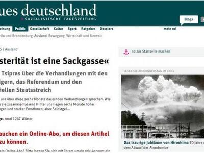 Σε εκτενή συνέντευξή του προς την αριστερή εφημερίδα Neues Deutschland o Αλ. Τσίπρας μιλάει για τις εν εξελίξει διαπραγματεύσεις με τους δανειστές αλλά και τους λόγους που τον οδήγησαν στη διεξαγωγή του δημοψηφίσματος.