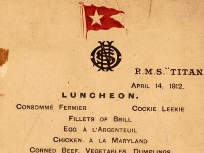 Παστό βοδινό, ζυμαρικά και λαχανικά: Αυτό θα ήταν το τελευταίο γεύμα των επιβατών του "Τιτανικού" αν είχε αποφευχθεί η ναυτική τραγωδία στις 15 Απριλίου του 1912. Ο ιστορικός κατάλογος θα εκτεθεί σε δημοπρασία στις 30 Σεπτεμβρίου στη Νέα Υόρκη, όπως μεταδίδουν τα διεθνή ΜΜΕ, και η τιμή του μπορεί να αγγίξει το ποσό των 70 χιλιάδων δολαρίων.