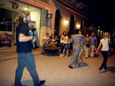 Ο κόσμος ενθουσιασμένος παρακολουθούσε τους επίδέξιους χορευτές, λυκνιζόταν δειλά στους ήχους του ακορντεόν, αγκαλιάζονταν πιο σφηχτά και χαμογελούσαν με θαυμασμό και ευχαρίστηση...