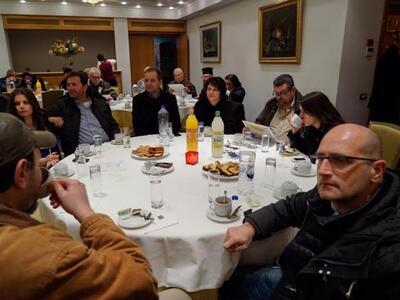 Με επιτυχία έγινε η κοπή της πρωτοχρονιάτικης πίτας 2016 του Γορτυνιακού Συνδέσμου Πατρών "ο Άγιος Γρηγόριος ο Ε'" την περασμένη Κυριακή 24/1 στο ξενοδοχείο PATRAS PALLACE. Παρευρέθη πλήθος Γορτυνίων και φίλοι των Γορτυνίων. Την πίτα ευλόγησε ο Σεβασμιότατος Μητροπολίτης Πατρών κ.κ. Χρυσόστομος. Παρέστησαν ο αντιπεριφερειάρχης κ. Αγγελόπουλος, οι βουλευτές κ. Νικολόπουλος, κ. Καστανιώτης και κ. Φωτήλας, ο πρώην βουλευτής και νομάρχης κ. Κατσικόπουλος, ο πρώην δήμαρχος κ. Καράβολας, ο δημοτικός σύμβουλος κ. Χριστόπουλος, ο πρόεδρος του επιμελητηρίου κ. Πλ. Μαρλαφέκας, η πρόεδρος των "Αρκάδων" κα Ανδρονοπούλου και ο πρόεδρος της ΔΕΥΑΠ κ. Κοντοές, οι οποίοι κόβοντας ένα κομμάτι πίτας έδωσαν τις ευχές τους. Επίσης, πίτα έκοψαν και ευχήθηκαν ο αντιπρόεδρος του συλλόγου, κ. Μέγας, καθηγητής ορθοπεδικής, και οι πρώην πρόεδροι κ. Θ. Δούρος, βιομήχανος, και κ. Γ. Κακούρης, ιατρός- πρόεδρος ιατρών νοσοκομείου Αγίου Ανδρέα. Μετά την κοπή έγινε η καθιερωμένη βράβευση επιτυχημένων Γορτυνίων της κοινωνίας της Πάτρας. Φέτος βραβεύθηκαν οι αδερφοί Ιωάννης- Κωνσταντίνος- Πλάτων Μαρλαφέκας, υιοί του αειμνήστου Παναγιώτη εκ ΜΑΡΚΟΥ Γορτυνίας. Παρέλαβαν από τον πατέρα τους μία οικογενειακή επιχείρηση (εταιρεία αναψυκτικών Λουξ) και με την εργατικότητα και της επιχειρηματικότητα τους την οδήγησαν σε μία Εθνικής εμβέλειας βιομηχανία, διαφημίζοντας την Πάτρα. Επισυνάπτεται σχετικός φάκελος φωτογραφιών.2) Με θλίψη ανακοινώνουμε τον αιφνίδιο θάνατο του Προέδρου του Δημοτικού Συμβουλίου Γορτυνίας Δημητρίου Παπασπηλίου εκ ΚΑΛΛΙΑΝΙΟΥ Γορτυνίας. Ο εκλιπών υπήρξε δραστήριο μέλος της τοπικής αυτοδιοίκησης, είχε διατελέσει Νομαρχιακός Σύμβουλος και πρώην Δήμαρχος στον πρώην Καποδιστριακό δήμο ΗΡΙΑΙΑΣ. 3) Η Μαρία Κολοβού- Ρουμελιώτη εκ ΠΟΥΡΝΑΡΙΑΣ, στον Πανελλήνιο διαγωνισμό 2015, για όλα τα είδη της λογοτεχνίας, της Πανελληνίου Έκδοσης Λογοτεχνών, ΒΡΑΒΕΥΤΗΚΕ στο είδος Νουβέλας για το έργο της "Στην κατακόμβη της σαρκός".