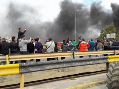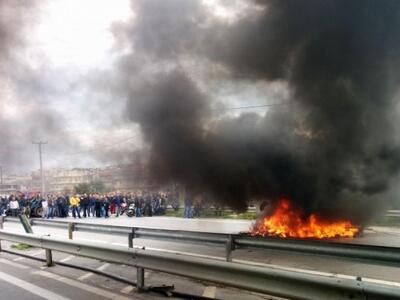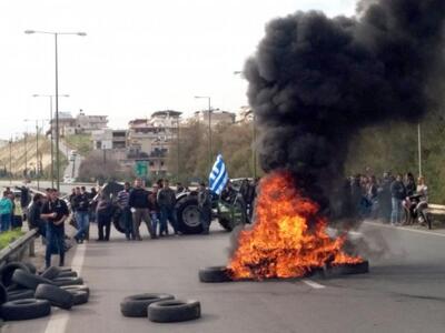 Οι αγρότες μόλις έφτασαν στο Γιόφυρο έστησαν και… πύρινα οδοφράγματα μαζεύοντας λάστιχα και βάζοντάς τους φωτιά στη μέση του δρόμου.