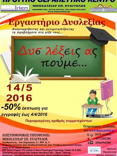 Πληροφορίες – Εγγραφές στο 2610 433 852, κιν. 6972202289 & 6986994580