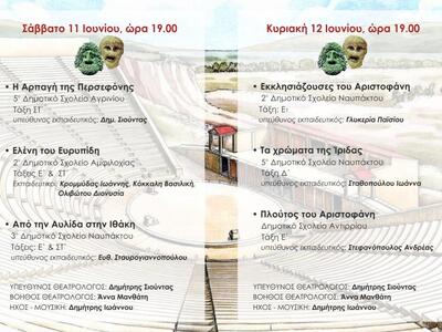 Δείτε αναλυτικά το πρόγραμμα του Μαθητικού Φεστιβάλ Θεάτρου Ναυπάκτου το οποίο θα πραγματοποιηθεί το Σαββατοκύριακο 11 και 12 Ιουνίου.