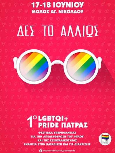 Το 1ο ΛΟΑΤΚΙ+ Φεστιβάλ Υπερηφάνειας Πάτρας για την Απελευθέρωση του Φύλου και της Σεξουαλικότητας ενάντια στην Καταπίεση και τις Διακρίσεις είναι γεγονός! Για πρώτη φορά στην Πάτρα θα πραγματοποιηθεί στις 17 και 18 Ιουνίου στο Μόλο της Αγ. Νικολάου ένα φεστιβάλ που θίγει τα θέματα της ταυτότητας και έκφρασης φύλου, της σεξουαλικότητας και των διακρίσεων.