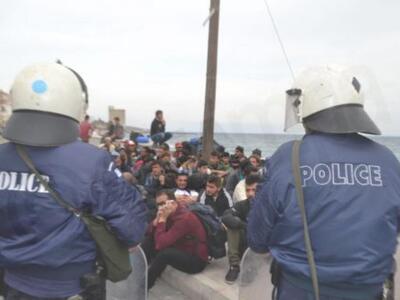 Σύροι και Ιρακινοί κατευθύνθηκαν στο κέντρο της Μυτιλήνης, όπου ανασυγκροτήθηκαν και κατέλαβαν την είσοδο του επιβατηγού λιμανιού