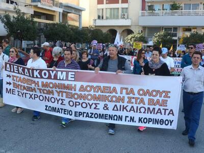 Στην πορεία της Πάτρας συμμετείχαν εργαζόμενοι νοσοκομείων, ΕΚΑΒ, γιατροί από νοσοκομεία και υγειονομικές μονάδες της Δυτική Ελλάδας, καθώς και σωματεία συνταξιούχων.