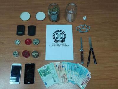 Κατασχέθηκαν μεταξύ άλλων περισσότερα από 60 γραμμάρια κάνναβης, δυο στιλέτα και μια σιδερογροθιά