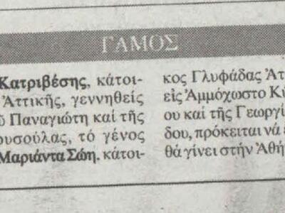 Το ζευγάρι έχει δημοσιεύει ήδη την αναγγελία του γάμου του στην ιστορική εφημερίδα “Εστία” και ετοιμάζονται για το ευχάριστο γεγονός που θα πραγματοποιηθεί στην Αθήνα.