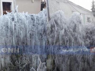 Πάγος και πολύ χαμηλές θερμοκρασίες στην Δάφνη Καλαβρύτων με την φύση να παίζει και να δημιουργεί... κρυστάλλινους φράχτες.
