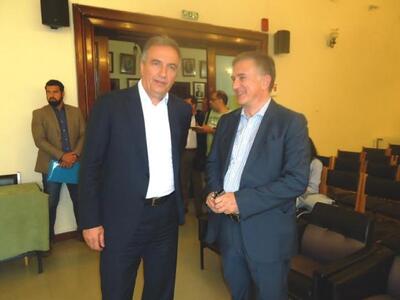 Στιγμές από τη συνεργασία τους κατά το παρελθόν είχαν την ευκαιρία να θυμηθούν ο τομεάρχης Ευρωπαϊκών Υποθέσεων της ΝΔ και πρώην Υπουργός, Σταύρος Καλαφάτης, με τον πρώην Υφυπουργό Οικονομικών, Γιώργο Μαυραγάνη στο περιθώριο της χθεσινής Νομαρχιακή Συνέλευση της ΝΟΔΕ Αχαΐας του κόμματος.