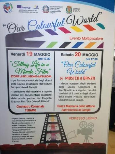 Με τον καλύτερο δυνατό τρόπο ολοκληρώθηκε το πρόγραμμα Erasmus+ KA2 του Νηπιαγωγείου Δρεπάνου στο Teramo της Ιταλίας. Στις 19 Μαΐου έγινε η πρώτη παρουσίαση του ντοκιμαντερ (το οποίο είναι και το τελικό προιόν) TELLING LIFE IN A MINUTE FILM στο κινηματοθέατρο της πόλης.