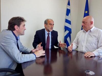 Στη συνάντηση που έγινε στα γραφεία της Περιφέρειας συμμετείχε επίσης, ο Αντιπεριφερειάρχης Περιφερειακής Ανάπτυξης και Επιχειρηματικότητας Κώστας Καρπέτας και ο Διευθυντής Εταιρικής Επικοινωνίας και Αειφόρου Ανάπτυξης της ΓΕΦΥΡΑ Α.Ε. Γιάννης Φρέρης.»