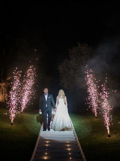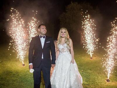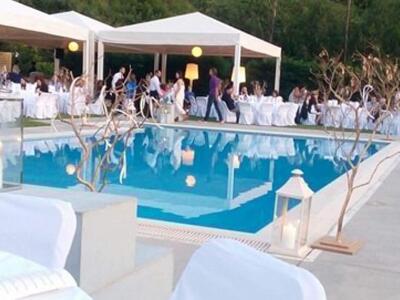Επίσης, η νύφη με τις φίλες της είχαν ετοιμάσει ένα χορευτικό έκπληξη, ενώ νεόνυμφοι και προσκεκλημένοι διασκέδασαν με την ψυχή τους μέχρι το πρωί! Το γλέντι «σφραγίστηκε» με βουτιές στην πισίνα, από το ζευγάρι και τους καλεσμένους, μέχρι και τον dj!