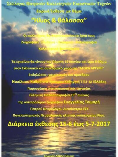 Ο Σύλλογος Πατρινών Καλλιτεχνών Εικαστικών Τεχνών θα πραγματοποιήσει έκθεση με θέμα «Ήλιος & θάλασσα», με έργα ζωγραφικής, γλυπτικής, χαλκογραφίας, κ.α.