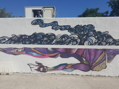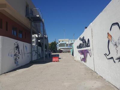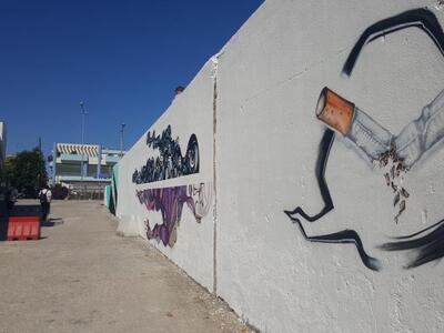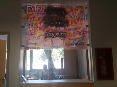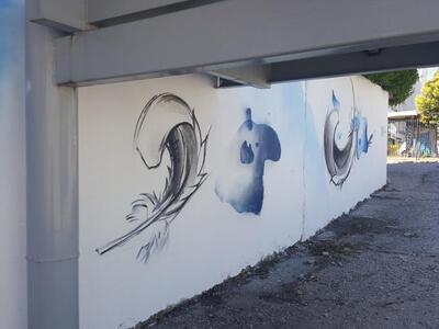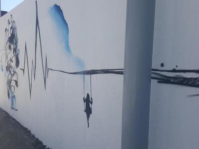 Το πρώτο graffiti ολοκληρώθηκε την προηγούμενη εβδομάδα δίνοντας μια ξεχωριστή νότα στο χώρο. Ακολούθησαν αρκετά ακόμα. Ένα με ξεκάθαρο μήνυμα κατά του καπνίσματος - πρόγραμμα το οποίο εξάλλου "τρέχει" το νοσοκομείο - και ένα ακόμη πόλύ ξεχωριστό το οποίο μας εξηγούν οι grafita-δες καλλιτέχνες.