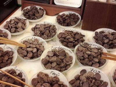 Αρχίζει η δοκιμή διαλέγοντας από δεκάδες γεύσεις σε μικρά πιατάκια σοκολατένιες "ασπιρίνες". Σοκολάτα με θαλασσινό αλάτι, με ματζουράνα, με τζίντζερ, με λευκό πιπέρι, με κανέλα, με πεπεροντσίνο, με μέλι, με λεμόνι, με κάρδαμο, με…..μάντολες με σοκολάτα έως και πιτάκια με σοκολάτα και κιμά, ναι, ναι με κιμά !! Αλλά και μπίρα από Σοκολάτα.