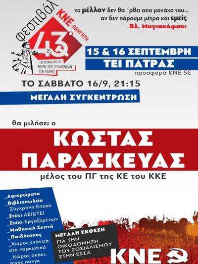 - Μεγάλη Συγκέντρωση και Ομιλία από τον Κώστα Παρασκευά, μέλος του ΠΓ της ΚΕ του ΚΚΕ