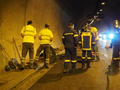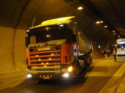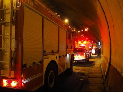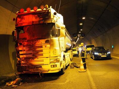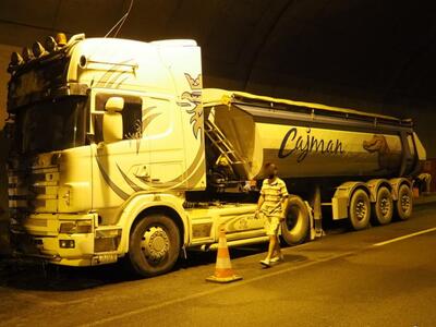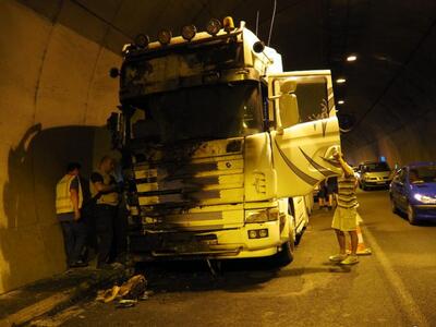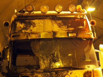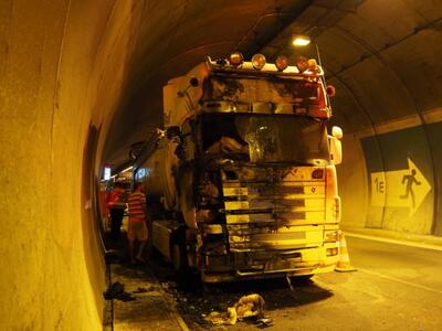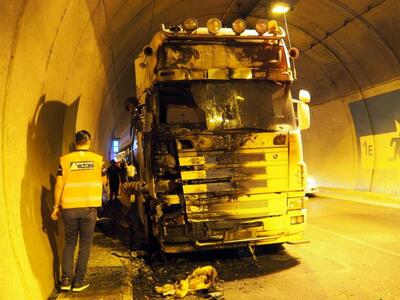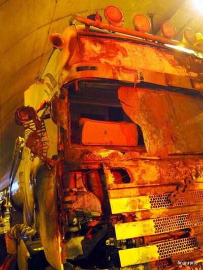 Η κυκλοφορία διεκόπη και μέσα στο τούνελ την ώρα της κατάσβεσης ήταν μόνο δύο ακόμα νταλίκες που είχαν σταματήσει για να προσφέρουν βοήθεια.