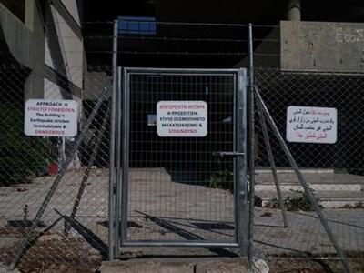 Μάλιστα τοποθετήθηκε συρματόπλεγμα και πινακίδες που προειδοποιούν για κίνδυνο κατάρρευσης, στα Ελληνικά, τα Αγγλικά και τα Αραβικά.