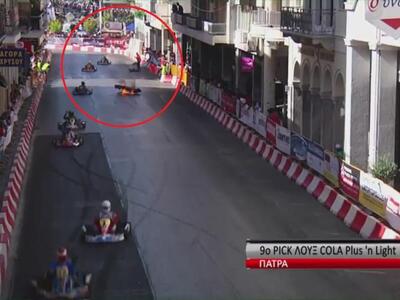 Το κάρτ απομακρύνθηκε, ο αθλητής μεταφέρθηκε προληπτικά στο νοσοκομείο - αν και όλα δείχνουν πως είναι καλα, απλά υπέστη σοκ από την πτώση στο οδόστρωμα - και ο αγώνας συνεχίζεται.