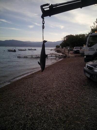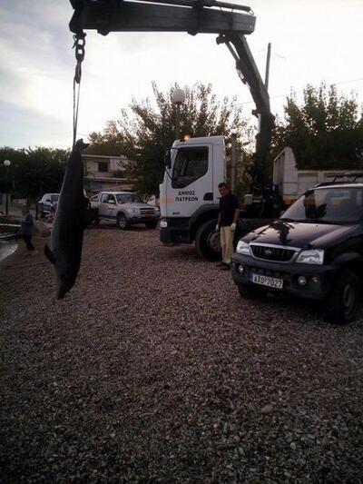 Το δελφινι απομακρύνθηκε από το σημείο από τα συνεργεία καθαριότητας του Δήμου Πατρέων.