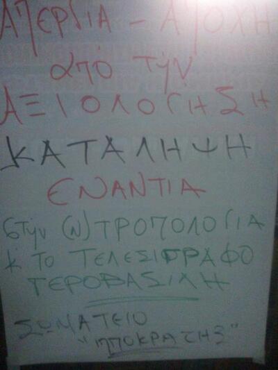Πιο συγκεκριμένα προχώρησαν σε κατάληψη του γραφείου Προσωπικού και του Πρωτοκόλλου, μια Κατάληψη που σαφώς είχε να κάνει με τις Αξιολογήσεις, την (ν)τροπολογία και το τελεσίγραφο Γεροβασίλη, όπως τονίζεται σε ανακοίνωση του σωματείου εργαζομένων του νοσοκομείου «Ο Ιπποκράτης».
