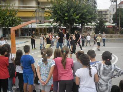 Οι «Προμηθείς» μίλησαν με τα παιδιά για μπάσκετ, έπαιξαν μαζί τους και υπέγραψαν αυτόγραφα, ενώ μοίρασαν στους μαθητές προσκλήσεις για τον αγώνα του Σαββάτου με τον Γυμναστικό Λάρισας/Φάρο..