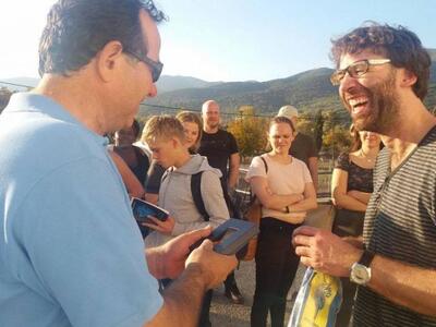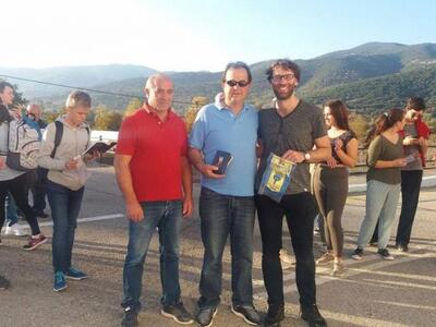 «Στην επίσκεψη των μαθητών από την πρώτη μέρα, βρέθηκε η Διοίκηση της Αθλητικής Ένωσης Καλαβρύτων όπου και συνόδευσε την αποστολή στο πέρασμά τους από την πόλη μας. Στο Μέγα Σπήλαιο, πρώτο σταθμό της περιοδείας, υποδέχθηκαν την αποστολή, εκπροσωπώντας της Α.Ε.Καλαβρύτων, ο Γενικός Γραμματέας κος Ευθύμιος Φλογεράς και ο Ταμίας του Συλλόγου κος Παναγιώτης Λιακόπουλος.