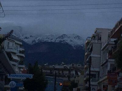 Λευκό τοπίο με το ξημέρωμα στις κορυφές του Παναχαϊκού όρους. Η καταιγίδα τα ξημερώματα στην Πάτρα δεν προκάλεσε προβλήματατα πλημμυρών. Ωστόσο η θερμοκρασία που έπεσε κατακόρυφα από χθες το απόγευμα, έντυσε στα λευκά τις κορυφές του βουνού της Αχαϊκής πρωτεύουσας.