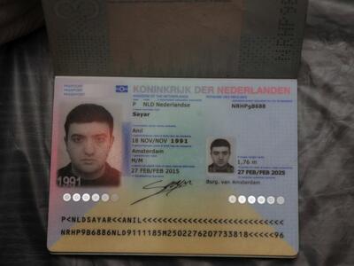 διαβατήριο Ολλανδικών Αρχών με αριθμό «ΝRHP9B688», όνομα κατόχου « Sayar Anil» και ημερομηνία γέννησης 18-11-1991 στο Άμστερνταμ,