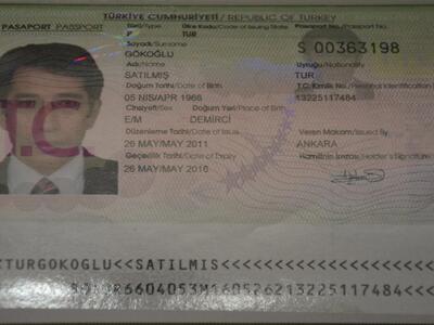 πλαστό ειδικό διαβατήριο Τουρκικών Αρχών με αριθμό «S 00363198», όνομα κατόχου «GOKOGLU SATILMIS» και ημερομηνία γέννησης 05-04-1966 στην Τουρκία.