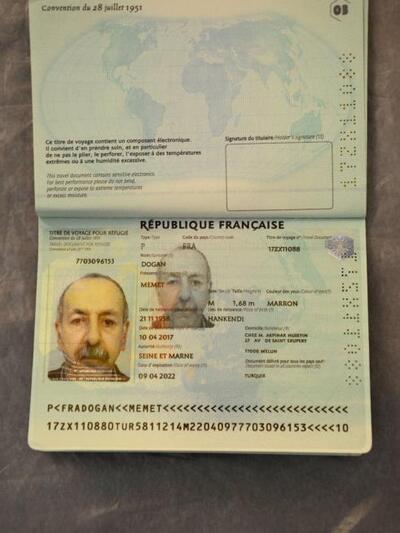 πλαστό διαβατήριο Γαλλικών Αρχών με αριθμό «17ΖΧ11088», όνομα κατόχου «DOGAN MEMET » και ημερομηνία γέννησης 21-11-1958,
