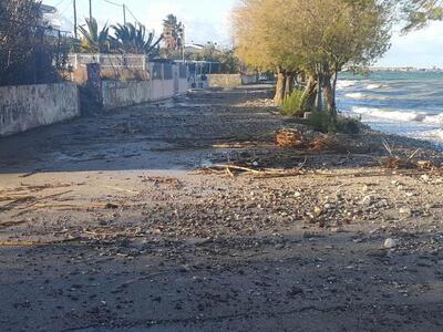 Γεμάτος πέτρες και φύκια ο παραλιακός δρόμος στα Αραχωβίτικα.