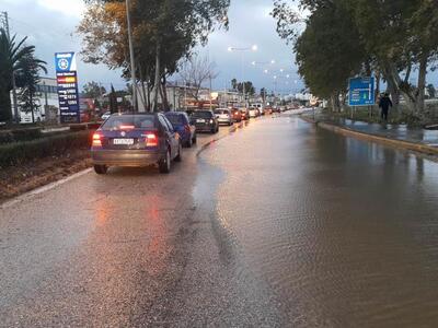 Kλειστή παρέμενε για αρκετή ώρα η παλαιά εθνική οδός Πατρών Πύργου στο ρεύμα προς Βραχνέικα από νωρίς το πρωί, στο ύψος του Κόκκινου Μύλου. Ο δρόμος πλημμύρισε για μια ακόμη φορά από νερά της βροχής.