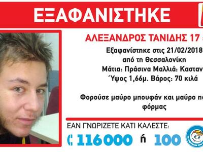 Στις 21/02/2018, εξαφανίστηκε από την Πυλαία Θεσσαλονίκης, ο Αλέξανδρος Τανίδης 17 ετών. Ο Αλέξανδρος έχει καστανά μαλλιά, πράσινα μάτια, έχει ύψος 1,66 μ. και ζυγίζει 70 κιλά. Την ημέρα που εξαφανίστηκε φορούσε μαύρο μπουφάν και μαύρο παντελόνι φόρμας. Σε ανακοίνωση του το Χαμόγελο του παιδιού αναφέρει:
